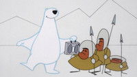 На белого медведя охотится эскимосы. Но внезапно охота прерывается.