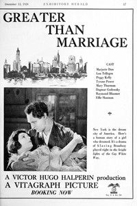 «Greater Than Marriage» (1924) — Victor Halperin, в ролях: Marjorie Daw и Lou Tellegen.